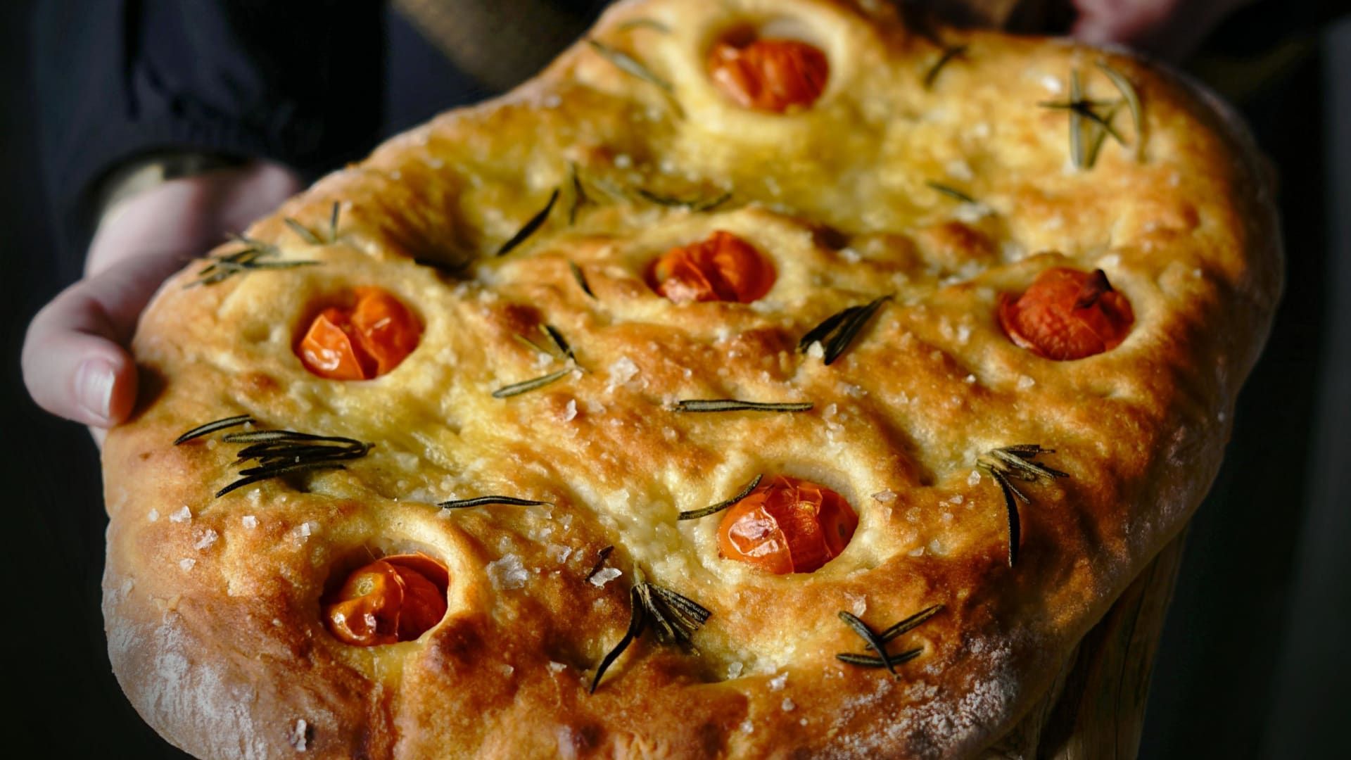 TIP: Focacciu můžeš ochutit pokaždé jinak. Před pečením ji posyp sdrhnutým rozmarýnem nebo tymiánem, nakrájenými rajčaty (čerstvými nebo sušenými), olivami, ořechy nebo plátky cibule.