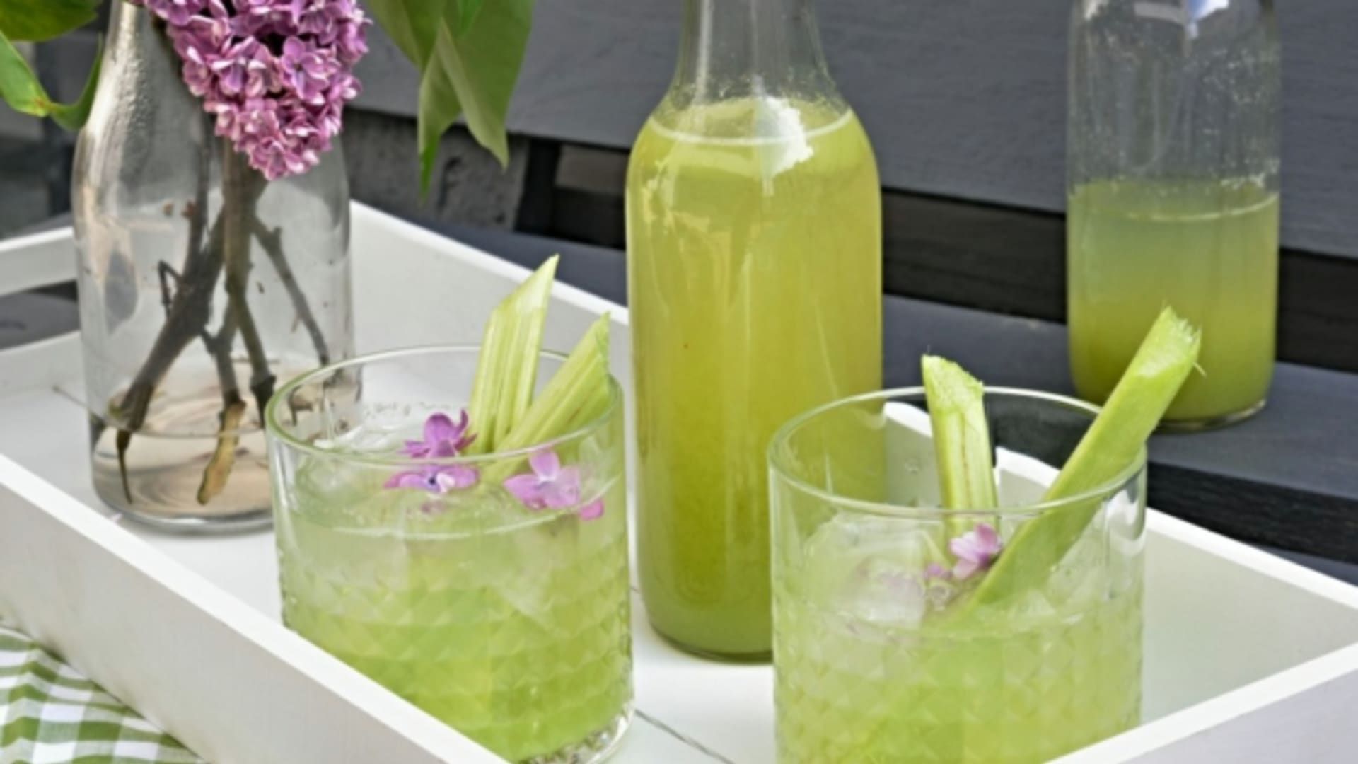 Lze použít i med. Dej vychladit. Před podáváním ji ale protřepej, přece jen miniaturní kousky rebarbory se po chvíli usadí na dně.
