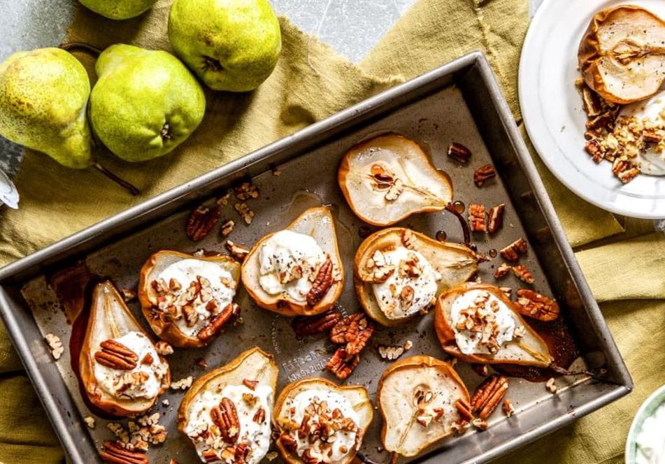 Pečené hrušky s vanilkovým skyrem a ořechy