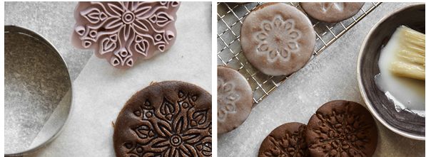 Upečené sušenky nech 5 minut odpočinout a poté je ještě teplé potři štětcem připravenou polevou. Nech zatuhnout na mřížce.